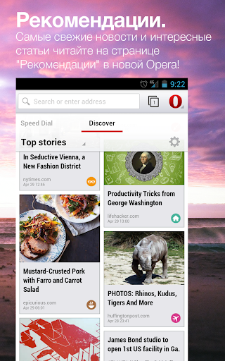 Браузер Opera Mobile для планшетов на Android