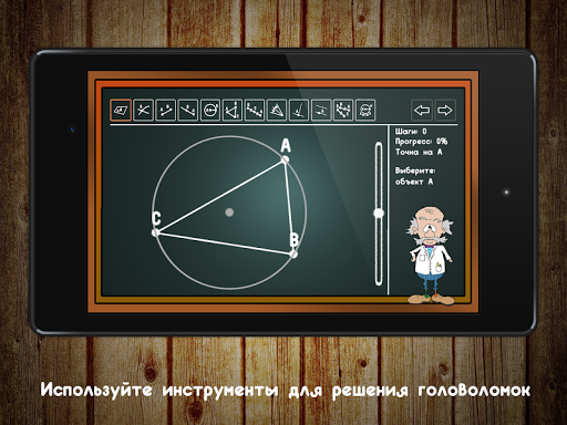 В этой игре вам предстоит вспомнить самые основы школьной геометрии, чтобы построить из одной геометрической фигуры – другую, используя для этого имитацию линейки и циркуля. Каждая задача будет не такой простой, как кажется. Поэтому если вдруг у вас возникнут затруднения с ее решением, обратитесь за советом к Сумасшедшему Ученому, который поможет вам в меру своих сил.